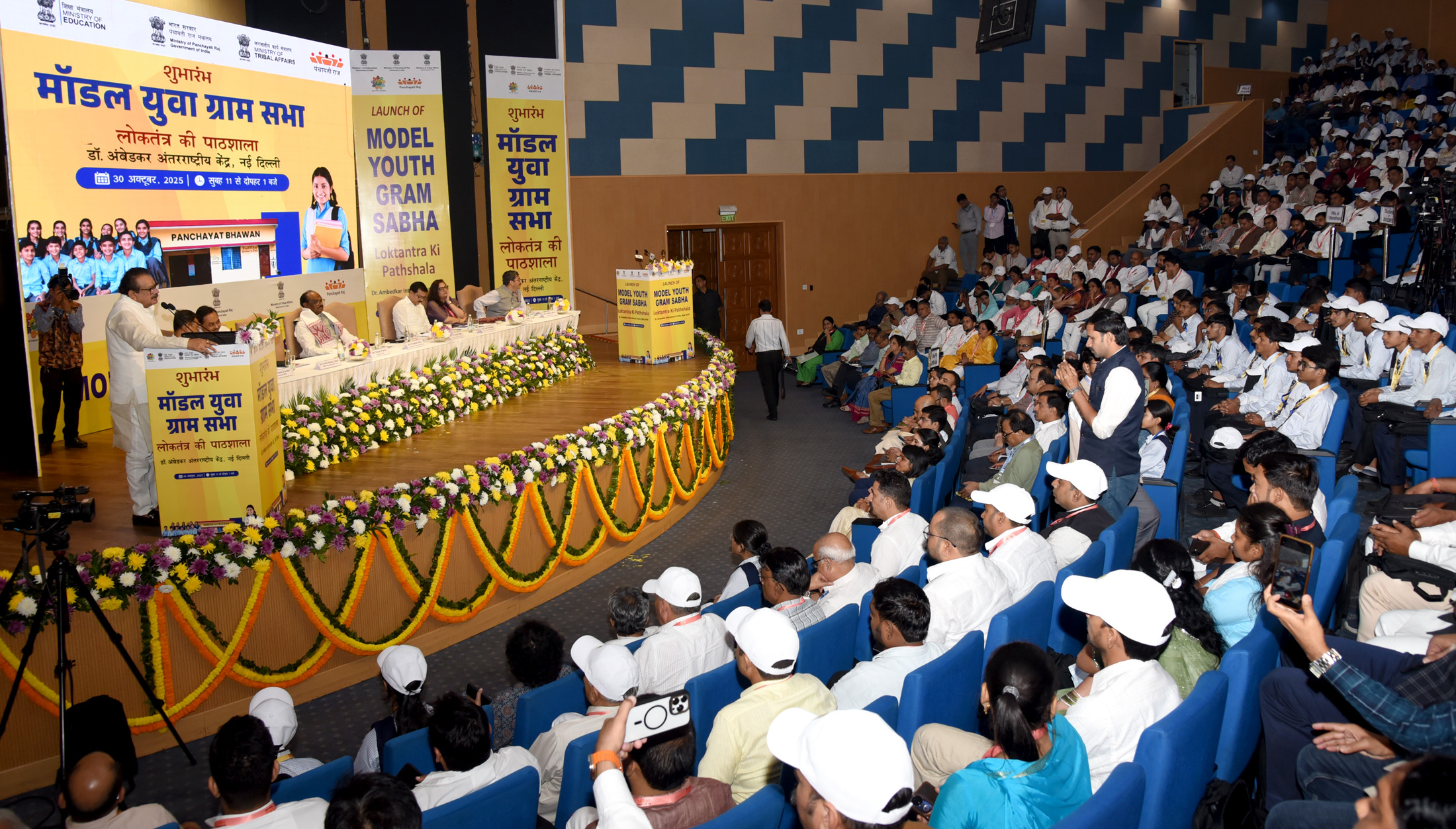 नई दिल्ली : पंचायती राज मंत्रालय ने शिक्षा मंत्रालय (स्कूल शिक्षा एवं साक्षरता विभाग) और जनजातीय कार्य मंत्रालय के सहयोग से आज नई दिल्ली में आदर्श युवा ग्राम सभा (एमवाईजीएस) पहल का शुभारंभ किया। इस अवसर पर आदर्श युवा ग्राम सभा और एमवाईजीएस पोर्टल पर प्रशिक्षण मॉड्यूल का भी अनावरण किया गया। यह युवाओं को जमीनी स्तर के लोकतंत्र से जोड़ने की दिशा में एक बड़ा कदम है। इस कार्यक्रम में केंद्रीय पंचायती राज राज्य मंत्री प्रो. एस. पी. सिंह बघेल और केंद्रीय जनजातीय कार्य राज्य मंत्री श्री दुर्गादास उइके भी उपस्थित थे। इस अवसर पर पंचायती राज मंत्रालय के सचिव श्री विवेक भारद्वाज, स्कूल शिक्षा एवं साक्षरता विभाग के सचिव श्री संजय कुमार और जनजातीय कार्य मंत्रालय की विशेष कार्य अधिकारी (ओएसडी) श्रीमती रंजना चोपड़ा सहित मंत्रालय के अन्य वरिष्ठ अधिकारी भी उपस्थित थे।