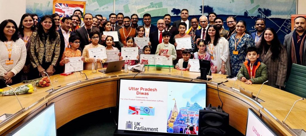 लंदन : लंदन स्थित ब्रिटिश संसद में उत्तर प्रदेश कम्युनिटी एसोसिएशन (यूपीसीए) यूके ने उत्तर प्रदेश दिवस का भव्य आयोजन किया। कार्यक्रम में सांसद, पूर्व सांसद, लॉर्ड, यूपी मूल के प्रवासी, काउंसिलर तथा समाज के अनेक गणमान्य व्यक्ति उपस्थित रहे।